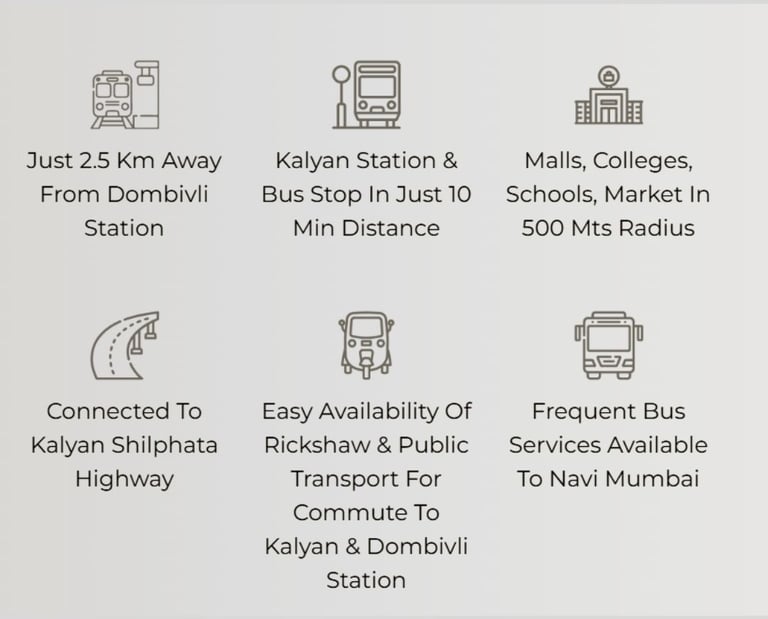 ⭐ Ample access to public transport, including autos and shared vehicles for easy commuting to Kalyan & Dombivli